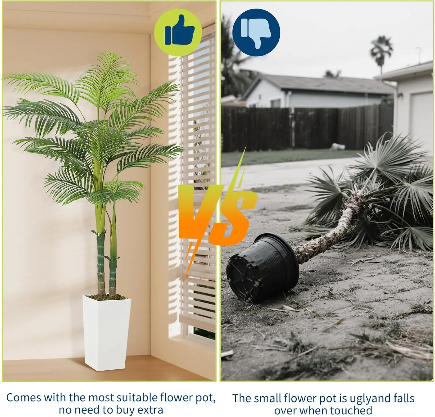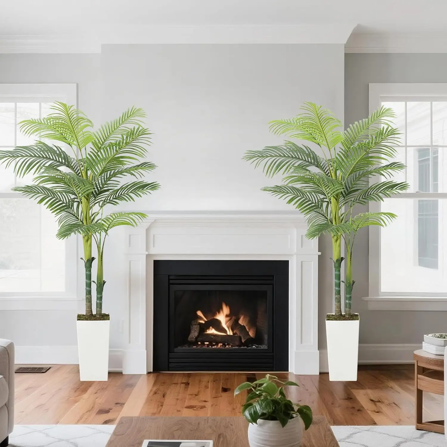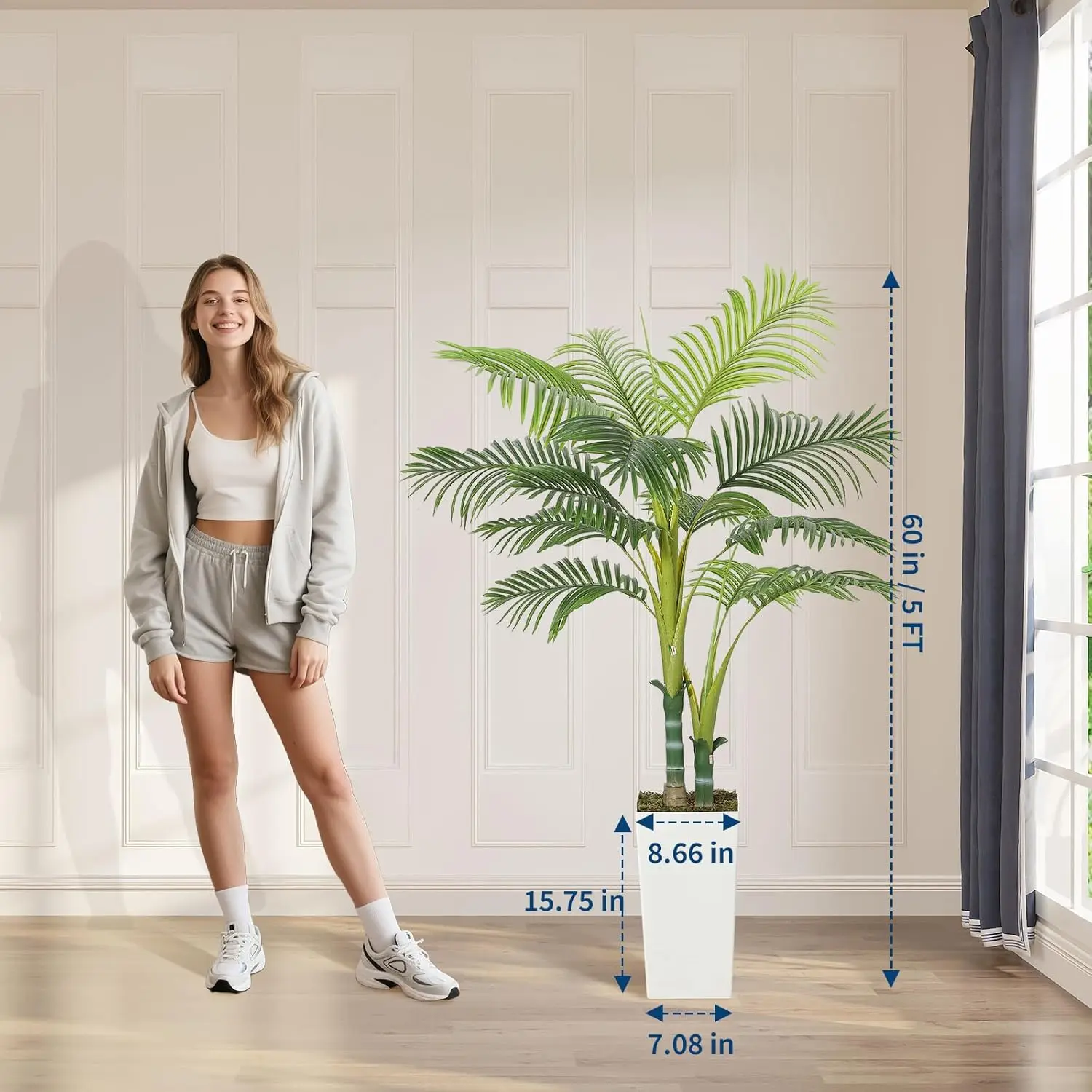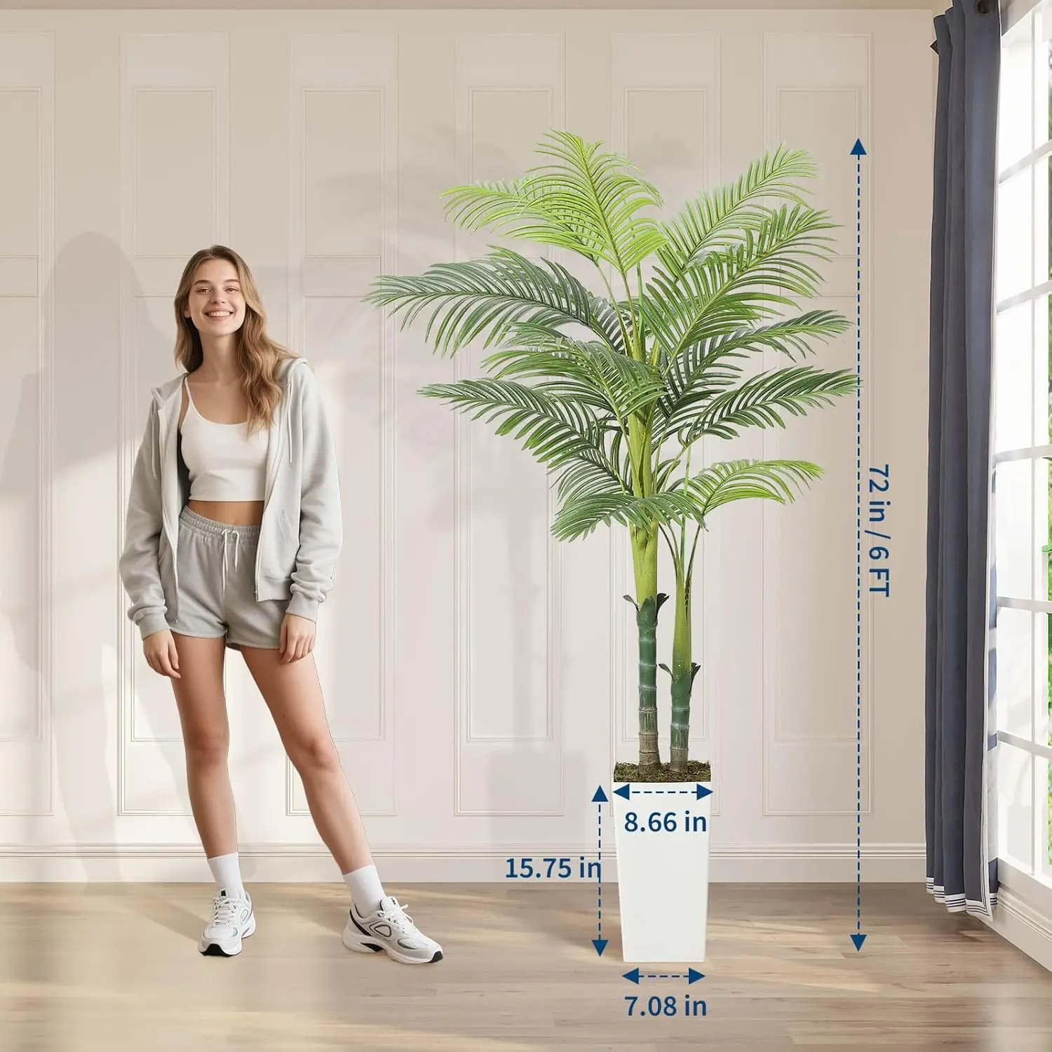 Artificial Palm Tree in White Tall Planter, Large Fake Tropical Plant for Home Decor, Fake Palm Plant,Tropical Artificial Tree