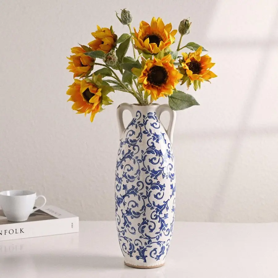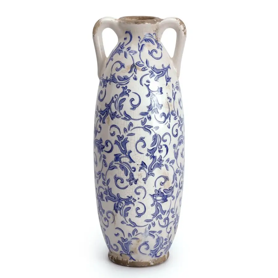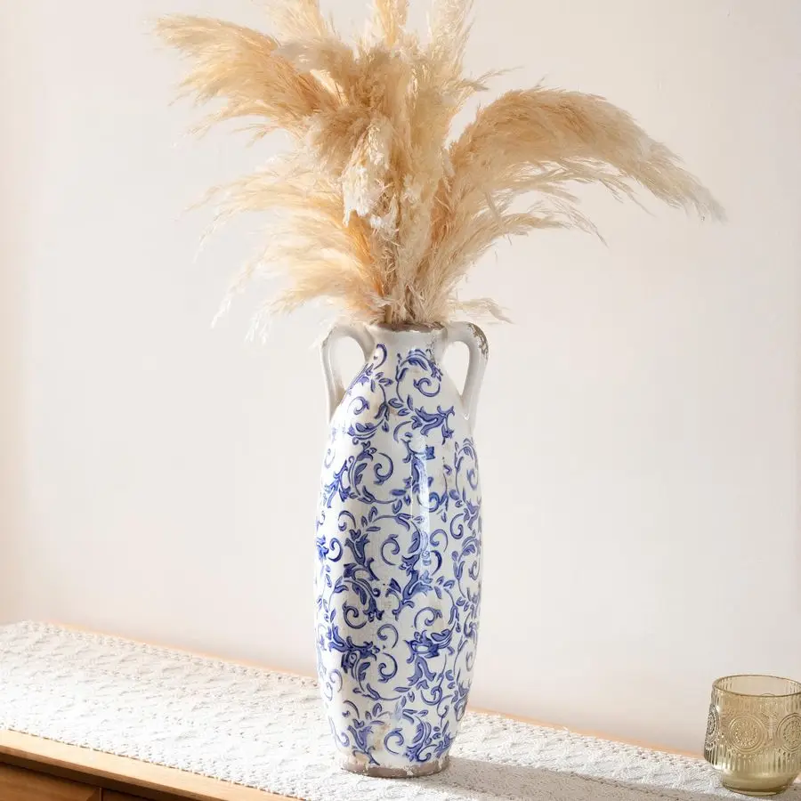 Blue and White Floor Vase for Pampas Grass, 14 Tall Vase for Home Decor, Ceramic Farmhouse Decorative Large Vases for Flower, Ma