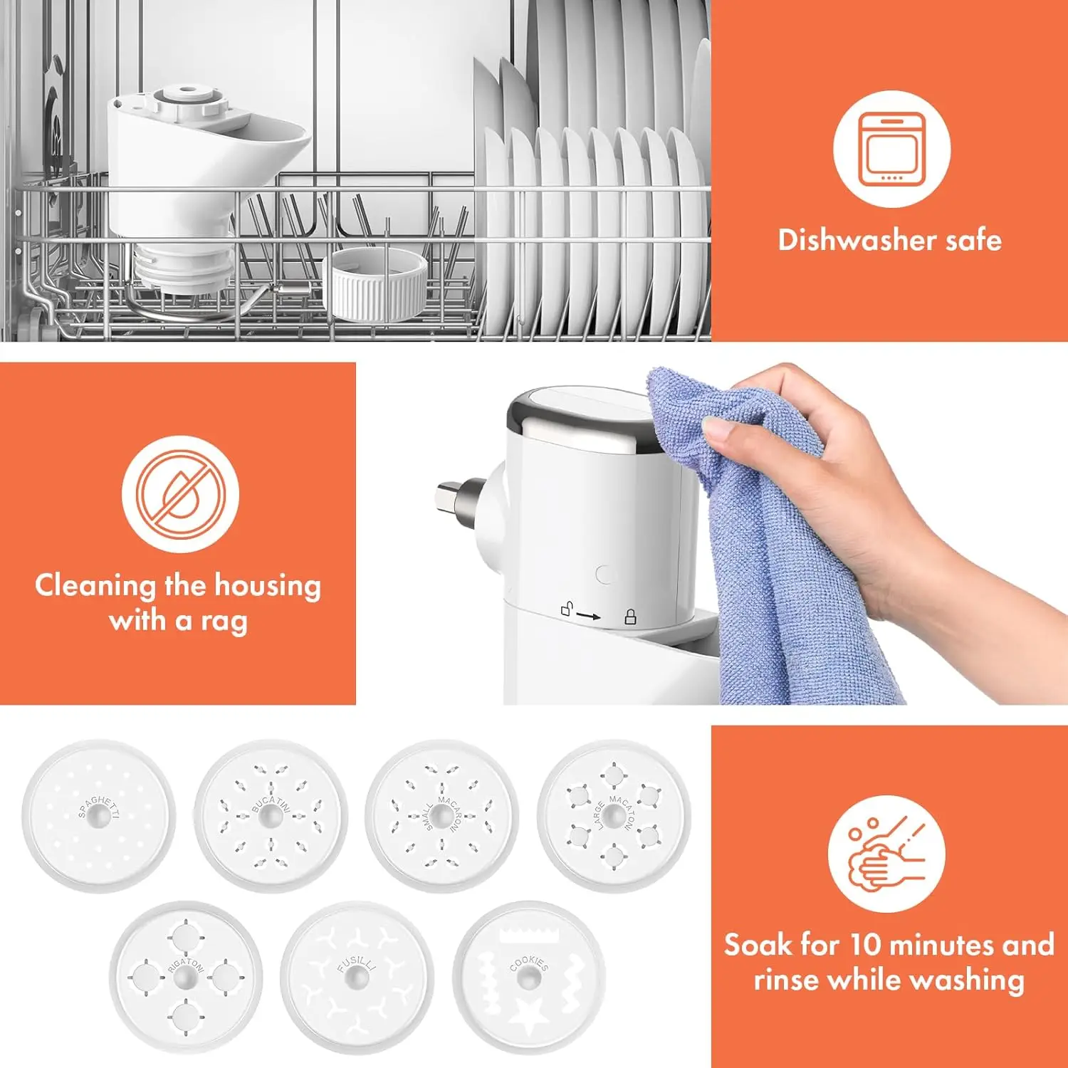Transform your KitchenAid stand mixer into a versatile pasta-making station with this high-quality attachment. Designed for home cooks seeking convenience and creativity, it offers everything you need to craft fresh pasta right in your own kitchen. Key Features: - Create 7 Different Pasta Shapes: This attachment includes seven interchangeable plates that allow you to easily produce a variety of pasta types, such as spaghetti, fusilli, and more. Unleash your culinary skills and enjoy customizing meals for family and friends. - Effortless Operation with No Clogging: Featuring a built-in cutter and pusher, the design ensures smooth dough flow without blockages. This makes the pasta-making process faster and more efficient, perfect for busy households or cooking enthusiasts. - All-in-One Storage Case Included: Keep all components organized with the included storage case. It neatly holds the seven plates and tools in one place, protecting them from damage while saving valuable kitchen space. - Universal Compatibility: Engineered to fit seamlessly onto most KitchenAid stand mixer models, this attachment eliminates the need for purchasing additional equipment. Simply attach it to your existing mixer to start making professional-quality pasta at home. - Simple Cleaning and Maintenance: The removable parts are dishwasher-safe for quick cleanup, while the main unit can be easily wiped clean with a damp cloth. Enjoy hassle-free maintenance that ensures hygiene after every use. Benefits: - Save time and effort by making fresh pasta quickly without complicated steps. - Enhance your cooking repertoire with multiple shape options for diverse recipes. - Durable construction ensures long-lasting performance in everyday kitchen use. Ideal for anyone who loves homemade meals or wants to explore new culinary techniques. Upgrade your kitchen tools today!