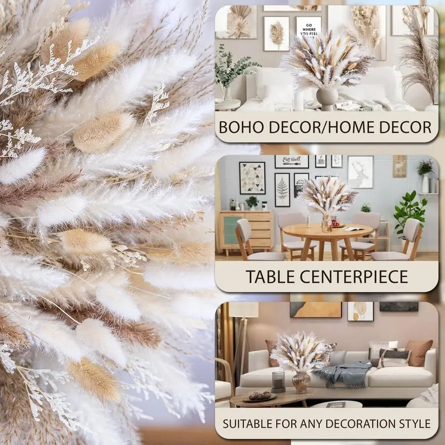 Fits any vase,Pampas grass makes it easy to mix and match with other decorative elements,the feathery and delicate nature of pampas grass creates a dreamy and romantic atmosphere in any room.